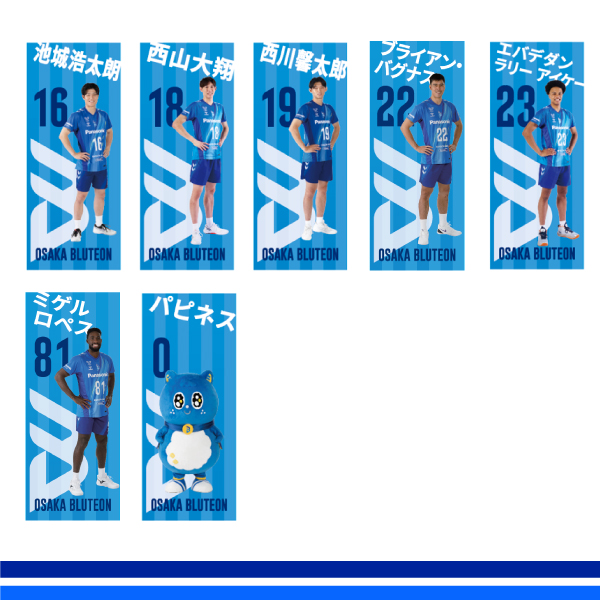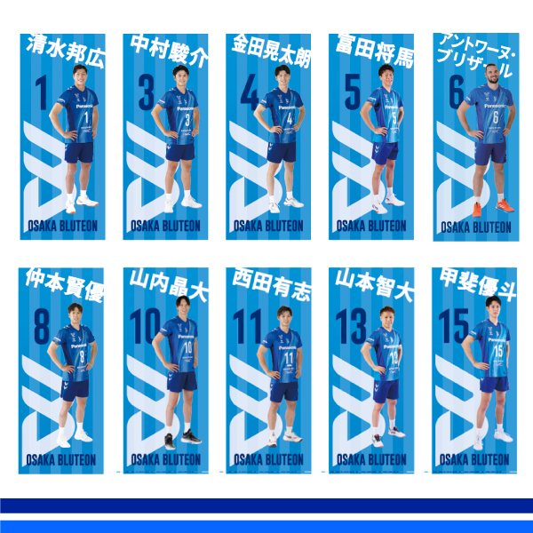 大阪ブルテオンのロゴを大きくシルエットで取り入れ、広げた際に選手名と背番号も目立つ場所にデザインしました!
