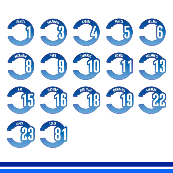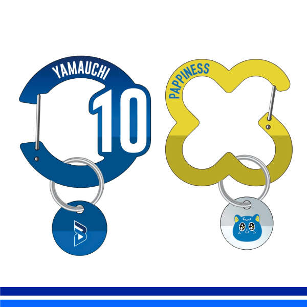 選手の背番号と名前、パピネスの四葉をアクリルカラビナキーリングで販売いたします!