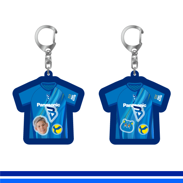 選手の顔、ロゴ、バレーボールをユニフォーム型のアクリルに入れてシャカシャカ動くキーホルダーを販売いたします!