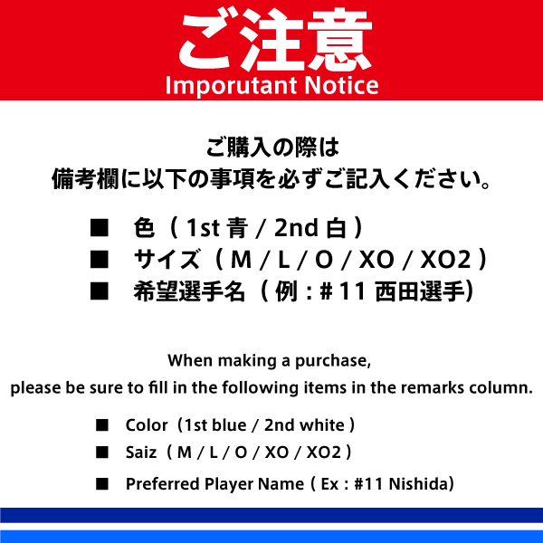 1st(青)ユニフォーム・2nd(白)ユニフォームの2色展開で限定3枚の先着販売となりますので、お早めにお買い求めください。